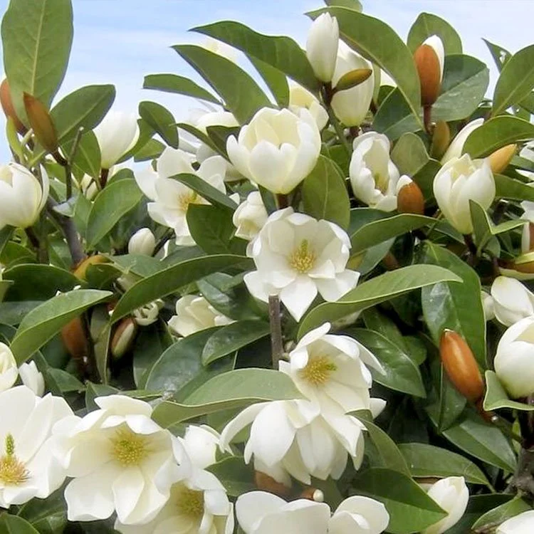 If you’re searching for a medium evergreen with a touch of elegance, the ‘Kay Parris Magnolia’ is an excellent choice. This stunning plant features glossy, deep green leaves with a rusty-brown underside, creating a striking contrast. During the blooming season, it produces large, fragrant white flowers that add a timeless beauty to any landscape.